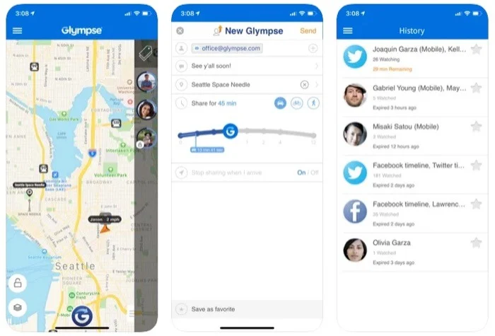 To safely let your contacts know where you are, you can use the app to send them a glimpse. Then, on any web-enabled device, anyone you share your locations with can watch your live location on a dynamic map without having to register. You can track someone’s locations by requesting their position on the app, Glympse, in addition to giving your location. Specifically, this feature can be helpful if you need to monitor your child.