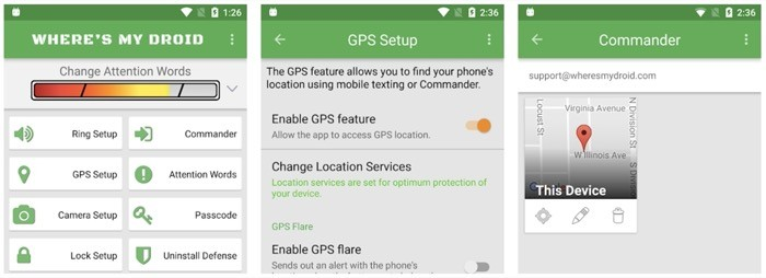 Where’s My Droid features: